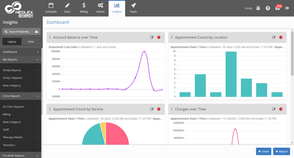 Quickly view and track the who, what, where, when, why and how much of every part of your clinic. Run and measure your reports over specific time periods to get a detailed look at what’s working and what’s not.