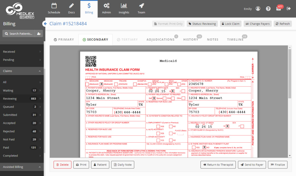 When you complete the documentation for an appointment, Fusion automatically generates a claim tied to the daily note.